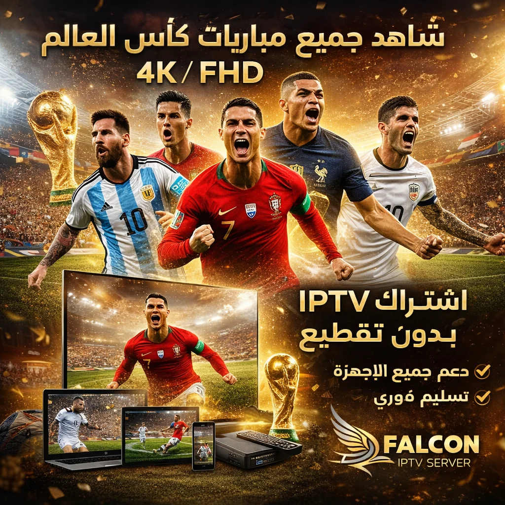 مشاهدة كأس العالم 2026 بجودة 4K – اشتراك فالكون IPTV الأمثل لكأس العالم
