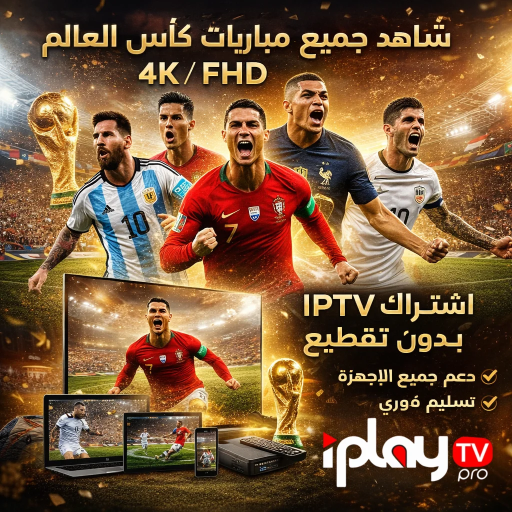 لا تفوّت أي لحظة من أهم حدث رياضي في التاريخ! مع اشتراك iPlayTV ستشاهد كأس العالم FIFA 2026 بجودة خارقة تصل إلى 4K Ultra HD، مع تغطية شاملة لجميع مباريات البطولة من مرحلة المجموعات حتى النهائي. البث المباشر لكأس العالم يكون بدون تقطيع وبأقل معدل تأخير ممكن، مع دعم تعليق عربي وأجنبي لتختار ما يناسبك. سواء كنت تتابع المباراة في الملعب افتراضياً من أي زاوية أو تستمتع بالتحليلات والبرامج الرياضية، فإن iPlayTV يضمن لك تجربة مشاهدة لن تنساها.